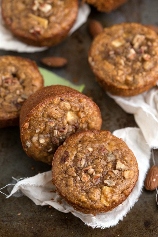 No white flour, no butter, and no oil in these almond butter, apple, and pecan muffins. These muffins are bursting with flavor, healthy, and gluten-free!